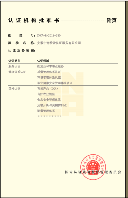 安徽省“食安安徽”品牌認證:評價是根據(jù)國際通行的合格評定方式,依據(jù)“食安安徽”品牌認證評價標準及相關(guān)規(guī)定,對申請“食安安徽”認證評價的食品生產(chǎn)經(jīng)營者和特定區(qū)域進行的第三方認證評價活動。“食安安徽”品牌認證評價標準包括企業(yè)認證和區(qū)域評價兩大類,企業(yè)認證對象包括食用農(nóng)產(chǎn)品生產(chǎn)者、食品生產(chǎn)企業(yè)、食品流通企業(yè)、餐飲服務企業(yè),區(qū)域評價對象包括食品生產(chǎn)基地、食品生產(chǎn)園區(qū)、餐飲安全街區(qū)、食品安全小鎮(zhèn)、安徽省食品安全示范縣(市、區(qū))。